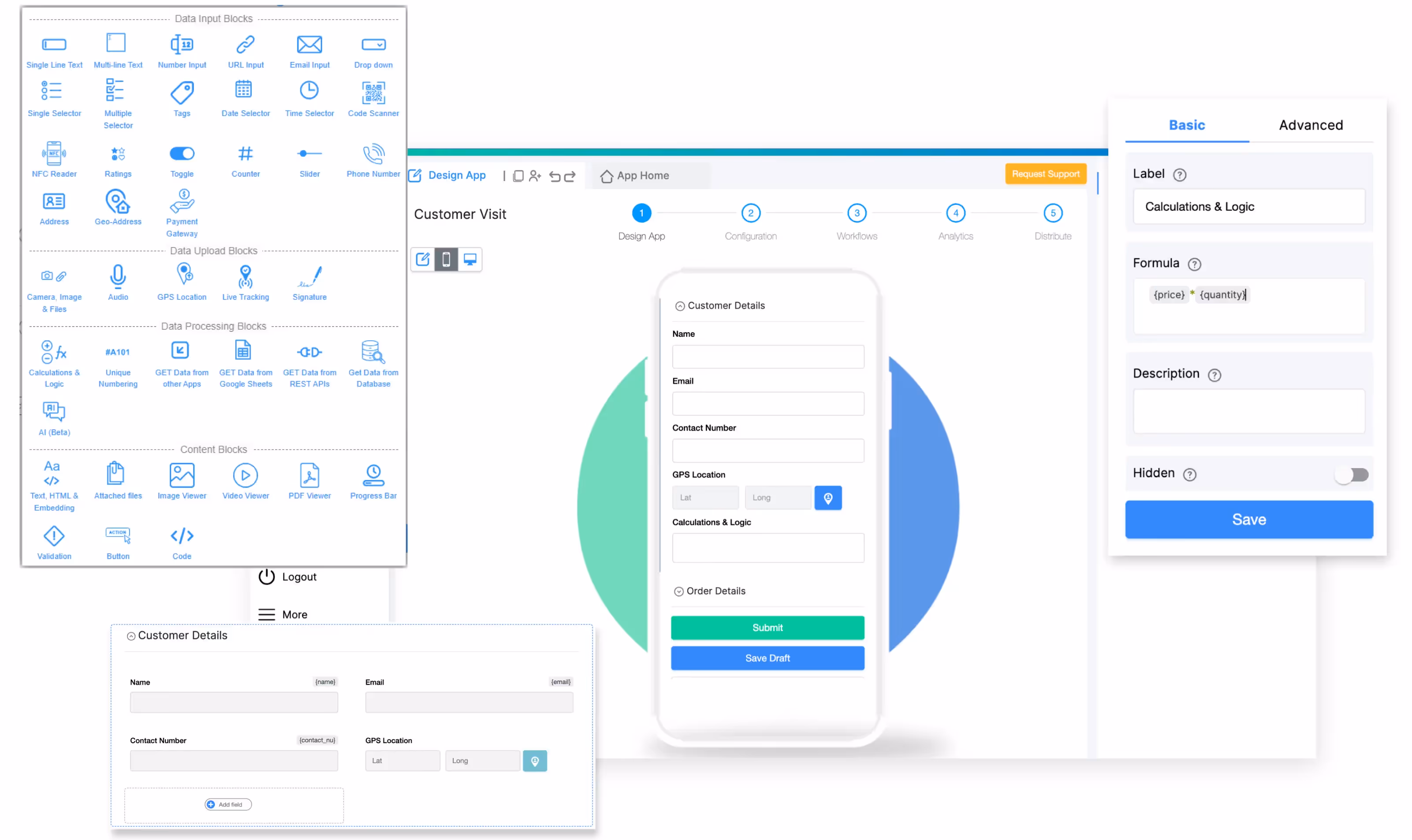 Using Clappia’s drag-and-drop interface, design the app layout. Add data fields like text inputs, image upload buttons, and other relevant fields for your use case. Include AI Blocks to enable AI-powered data analysis.