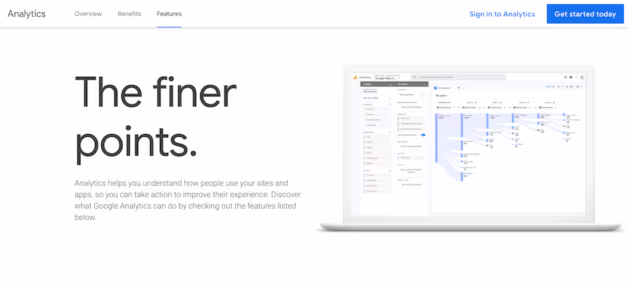 Google Analytics is the best no-code tool for analytics which utilizes data filtering, usage reports, data visualization, monitoring tools etc., and integrates easily with google apps and allows you to automate your business workflows.