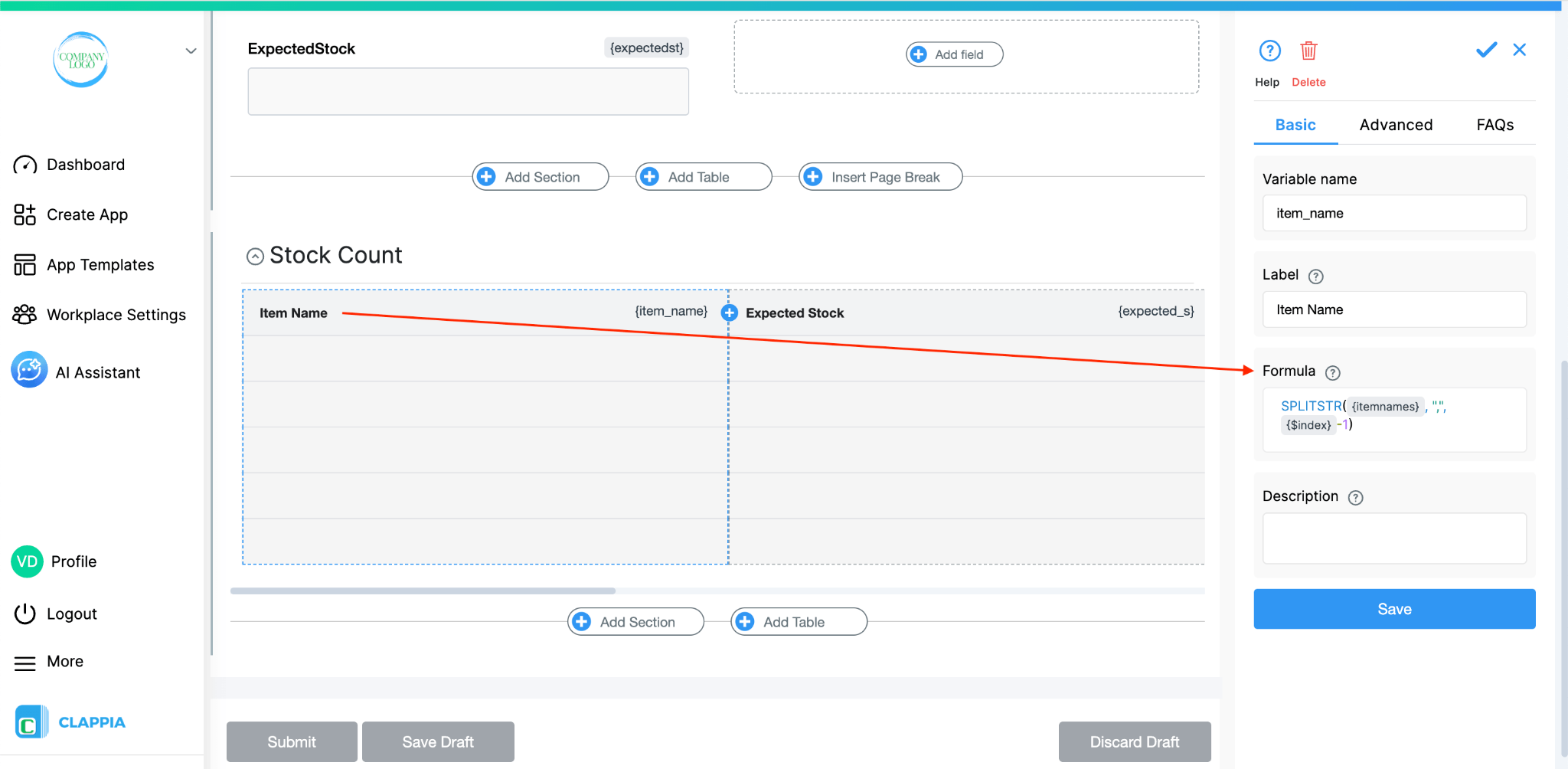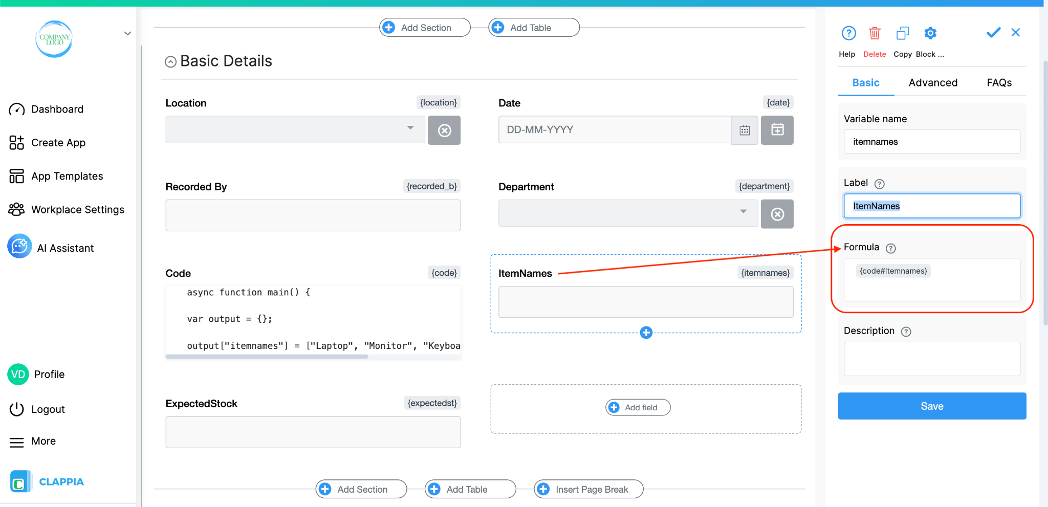This approach can be applied to any scenario where you want a table pre-loaded with a known list while keeping some columns editable. The item list in this example is hardcoded, but the same pattern works whether your data comes from an API, another app, or a reference sheet. To get started, log in to your Clappia workspace and create the app. If you need help with any step, the linked help articles and the Clappia support team are available.