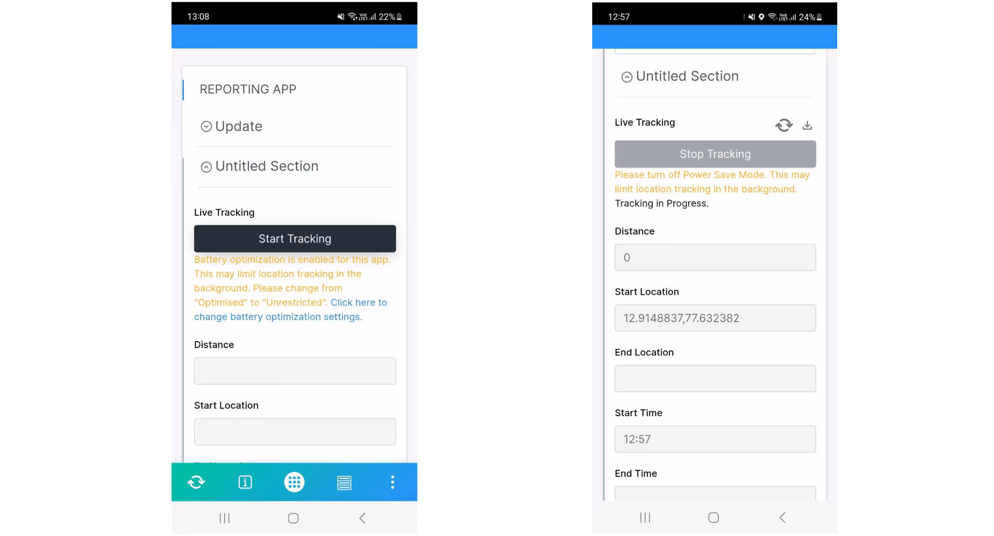 Live Tracking in Clappia is supported only on Android devices. The behaviour and reliability of live tracking can vary depending on the device’s hardware configuration and how the Android operating system manages background location access, battery usage, and system resources.